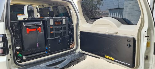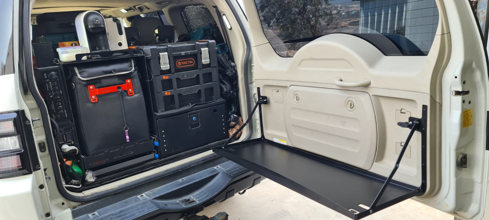 שולחן מאלומיניום 3 מ"מ המותקן על הדלת האחורית.